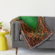 A quality printed throw has its advantages. This is a much finer weave throw than its loopier cousins, and though lighter, it is worth the investment for custom room accessorizing. The back is much prettier than the typical brown, and the fringe on the long sides very vivid, the selvage nicely done. Before photographing, I washed the throw in cold water, delicate, with a thicker woven throw the same size. On tumble dry low, this throw was dry in half the time as the other. This is a very practical quality if you use throws for furniture covers or to wrap up in frequently. The sleekness of the fabric makes it a great layer for accenting or protecting without the feeling of sitting on too much stuff. Perfect for napping or when you feel a light chill coming on. The color printing is beautiful and on this fabric, matched the design and color of my Photoshop image. This is an advantage for blending room fabrics and colors. The fringe on the short sides prints the colors from the design image and therefore varies from the side fringe. I streaked a white fractal line through the plaid pattern to give the illusion of weaving. This printed as crisp as an illusory thread, and put some white in the short side fringe, showing another advantage of print vs loomed- for artistic purposes, line lines, detail, and color integrity can be planned and preserved. My loomed throws have color limitations and more of a needlepoint texture. Print throws reproduce an exact image. The throw felt a little stiff straight out of the package, but this went away in the first delicate wash. Of course I searched the wash water for ink or bleeding and there was none.