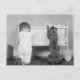 This vintage photograph from 1923 or 1924 shows a child and a dog kneeling before a bed, as if in prayer.
