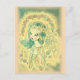 A sweet angel with green hair, gold wings and roses around her head, for a halo.