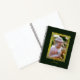 Bullet journal design features photo of a praying Buddha garden statue with black border background. Personalise with name or initials. Perfect appointment keeper for massage therapists and other energy bodyworkers.