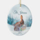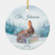 Cute winter scene with praying rabbit bunny Christmas ornament personalised.