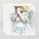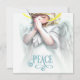 Beautiful little blonde praying angel, dressed in white with white wings, a yellow halo, and a prayerful message of Peace. Peace typography has swirl and scroll lettering.