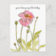 "You've been prayed for today" greetings featuring a bright pink poppy flower in full bloom with several buds in various stages of growth hand drawn with sepia ink and watercolor.