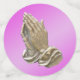 An Elegant, classy and stylish design of hands with palms pushed together praying in a beautiful faux copper on a two tone pale pink background.