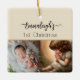 This is a lovely ornament, and great that you personalise the back with details of birthday, weight, etc.. My only tiny disappointment is the "My First" doesn't stand out very well on the background. More than happy with the printing of the photo and the writing on the back.