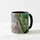 Praying Mantis Mug - This beautiful mug features a stunning close-up photograph of a praying mantis in its natural habitat. The vibrant green insect blends seamlessly into the surrounding leaves, showcasing its impressive camouflage skills. The image is a true marvel of nature, capturing the intricate details of this fascinating creature. This is likely Stagomantis californica (we live in the Sierra Foothills near Yosemite National Park). Like all mantids, the California mantis is carnivorous, consuming virtually any other insect it perceives as small enough to be eaten, including other members of its own species. Often during or after mating the female S. californica devours the male, allowing the female to have enough protein to create an egg case. All S. californica have sensors near their legs that allow the praying mantis to lose its head and still function!!