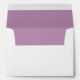 White envelope with lavender liner with return address on the back flap. Font and envelope colour can be changed to match any theme.