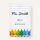 Featuring a lined notebook background and a vibrant crayon border, this badge is perfect for preschool and elementary educators. Personalise it with your name, grade level, and room number to create a fun and professional look that helps students, parents, and staff feel instantly connected.