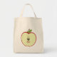 A pre kindergarten teacher bag featuring an illustration of half a red apple with two seeds in the shape of a heart. Text says "I (Love) Pre-K."