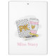 This pre kindergarten teacher clipboard keeps your papers in one place when you leave the classroom. Great teacher gift.. Pattern has a white notebook with black polka dots, a gold pk, heart coffee, ruler, pen and pencil. This white notebook with black polka dots design can be found on other items in my shop, PageCreativeDesigns.