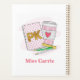 This pre kindergarten teacher planner keeps lesson plans in one place. Pattern has a pink polka dot notebook, heart coffee, ruler, pen and pencil. This pink polka dot notebook design can be found on other items in my shop, PageCreativeDesigns.