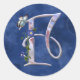 A fancy curled monogram "F" textured in multicolor metal with blue morning glories winding around the left of the nitial, with a colourful butterly in blue and white flying in to land on the flowers. This beautiful and elegant design makes a stylish monogram for lovers of flowers and butterflies!
