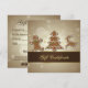Elegant and delicious Christmas illustration: Decorated gingerbread Christmas tree, gingerbread man and gingerbread deer with golden stars on a brown bokeh background.