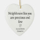 This heartfelt design is perfect for expressing appreciation for kind-hearted neighbours. It features the sentiment “Neighbours like you are precious and few,” making it a perfect way to celebrate the special people who make your community better. Customise this ornament with names to show your neighbours how much their kindness and friendship are cherished. Ideal for holidays or Thanksgiving.