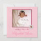 Personalise by adding baby photo, name and birth date to this feminine girl baby shower invitation with a pastel frame and a rose design encircled by lace. A perfect keepsake to put in her baby book. Matching theme baby party gift set available at Photography TK Designs gift store.