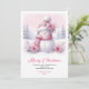 Celebrate the season with this cute watercolor pink coquette snowman kids Christmas card, set in a magical snowy forest. Editable text lets you personalize instantly, and the digital download provides an easy, fast, and festive holiday greeting.