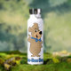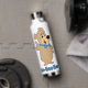The bottle looks even better in real life. The ice cubes I put in lasts all day! I have my bottle with me all the time. It's summer and having something cold to drink feels amazing. With this bottle I always have something super cold. I have only tried the hot drink once and it lasted a long time as well. The color blue is a navy blue and the white printed on it is vibrant. It printed perfectly. I love my personalized smile water bottle.