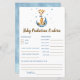 Budge Elegant simple It's a boy! baby showerPredictions & Advice Baby Shower Budge cards, featuring watercolor drawing of a sweet cute smiling little baby giraffe wearing a dusty blue ribbon, seating in a crescent moon, surrounded by watercolor soft blue, light blue stars decorating the background and watercolor soft dusty blue backing. You can customise this baby shower Predictions & Advice card with your own instructions. Baby predictions and advice is a funny game, ideal for your baby shower party, you and your guests will love to play it.