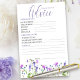 Predictions and Advice sheet to suit wildflower baby shower, girl or summer floral theme. Fun activity to involve guests at your baby shower, with words of wisdom for the parents to be. Delicate and feminine botanical design is hand lettered with "advice" in elegant script calligraphy. It has a pretty border of watercolor wild flowers in shades of lilac, lavender, purple, pink and blue. A dainty modern floral with girly, bohemian cottage garden theme. Please see my Purple Wildflower collection for matching items or, message me to create the templates you need.