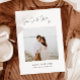Stylish and minimalist pregnancy announcement card featuring script text at the top that says "soon to be three" with a heart. You can add a photo on the front and back.