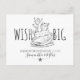 A unique vintage pregnancy announcement postcard with whimsical rocking horse and child and the proclamation: "wish big, our wishes came true and our baby is due".