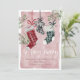 Announce the arrival of your new baby this Christmas season with our beautiful and festive Christmas pregnancy announcement holiday card. Our design features our hand-painted watercolor plaid pattern hanging Christmas stockings in red, green, and black. Each of the Christmas stockings is customised with the parent's name. The middle black plaid stocking is written with "Baby" to announce the arrival of your newest family member. "So Very Merry" is displayed in stylish white calligraphy. Customise with your baby's name and arrival date, along with greeting and parent's name. The reverse side features our watercolor-painted festive wreath with the baby's stocking hanging in the middle and customised with the baby's monogram. This is a unique memorable holiday card to send to your family and friends to announce your baby's arrival this holiday season.