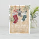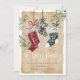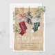 Announce the arrival of your new baby this Christmas season with our beautiful and festive Christmas pregnancy announcement holiday card. Our design features our hand-painted watercolor plaid pattern hanging Christmas stockings in red, green, and black. Each of the Christmas stockings is customised with the parent's name. The middle black plaid stocking is written with "Baby" to announce the arrival of your newest family member. "So Very Merry" is displayed in stylish white calligraphy. Customise with your baby's name and arrival date, along with greeting and parent's name. The reverse side features our watercolor-painted festive wreath with the baby's stocking hanging in the middle and customised with the baby's monogram. This is a unique memorable holiday card to send to your family and friends to announce your baby's arrival this holiday season.