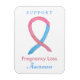 Pregnancy Loss uses a pink and blue ribbon to support awareness for its cause. The custom magnet features an awareness ribbon art magnet with the message "Support Pregnancy Loss Awareness". The NIH defines pregnancy loss as "when a pregnancy ends unexpectedly before the 20th week. It is sometimes called early pregnancy loss, mid-trimester pregnancy loss, miscarriage, spontaneous abortion, or foetal demise." The NIH states "stillbirth refers to the death of a foetus at or after the 20th week of pregnancy."