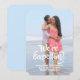 Share your exciting news with this custom pregnancy announcement. Substitute your photo and your expected arrival date. Select a background colour on the back to match your photo from the "colour picker". The wording can be dragged to any location, made larger or smaller (+ -) to accommodate your photo. If you need help, we'll be happy to arrange the photo and fonts for you at no extra charge.<br/><br/>The card is easy to customise with your wording, font, font colour and choice of six paper types.<br/><br/>Not exactly what you're looking for? All our products can be custom designed to meet your needs at no extra charge.<br/><br/>Simply contact us at askpixieprints@aol.com<br/><br/>Coordinating products available: