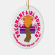 Black Afro Queen PREGNANT GIRL SUMMER Custom Christian Bible Verse Ceramic Ornament with CUSTOMIZABLE BIBLE VERSE, for expectant women who will be enjoying a summer for two. The design shows the brown silhouette of a Black African American woman with afro hair. The background shows a vintage palm tree sunset with pinks and oranges. The retro text reads PREGNANT GIRL SUMMER, and underneath the CUSTOMIZABLE TEXT reads 'Fearfully and wonderfully made' based on Psalm 123. This text can be PERSONALIZED with your name or other text. This Black Maternal Ornament would make an ideal gift if you are expecting a baby this summer or for a pregnant mum-to-be.