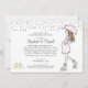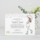 A cute whimsical pregnant mum under an umbrella, baby shower by mail postcard invite for twins. Gender neutral style. Whimsical cute style with baby chicks near mum. Mum and dad are adding one more! You may change the text, by adding your names or changing the verse if you prefer.