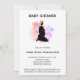 Energetically Enhanced IT's A GIRL Minimalistic Baby Shower Invitation of PREGNANT MOM Side view with BABY BUMP with a background of Ombre Peach Pink Lavender Flowers.