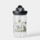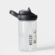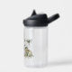 Prehistoric Dinosaur Scene, personalised water bottle. Features, template text line for name in coordinating green colour.