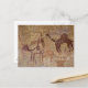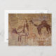 Prehistoric rock paintings with camels and postcard
