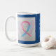 Premature Birth uses a pink and blue awareness ribbon to show support for its awareness. This custom mug features two pink and blue awareness ribbon guardian angel art paintings with the message "I Hope and Support Premature Birth Awareness!" The custom pink and blue awareness guardian angel ribbon art picture coffee cups or mugs can be customised with personalised messages to make great cause mugs for awareness fundraisers, awareness cup gifts, or other special events or cause support occasions. Make your own customised words for a personal message of hope and support to share!