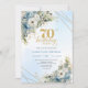 Premium dusty blue florals gold frame 70 birthday invitation