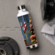 The bottle looks even better in real life. The ice cubes I put in lasts all day! I have my bottle with me all the time. It's summer and having something cold to drink feels amazing. With this bottle I always have something super cold. I have only tried the hot drink once and it lasted a long time as well. The color blue is a navy blue and the white printed on it is vibrant. It printed perfectly. I love my personalized smile water bottle.