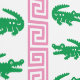 Preppy Alligator Greek Key Stripe – Pink & Green Wallpaper