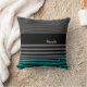 A preppy mens fashion pillow with fresh teal and black stripes on the bottom and a trendy black and grey striped pattern on the rest of the pillow. Personalise by adding your name to this modern contemporary style deco pillow.