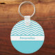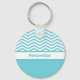 Preppy Aqua Blue and White Chevrons With Name Key Ring