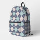 Preppy Argyle Plaid Pink Turquoise and Denim Blue Printed Backpack