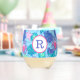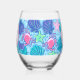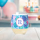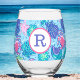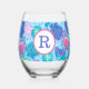 Preppy Beach Pink Crabs Shells Monogram Stemless Wine Glass