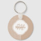 Preppy Beige and Tan Houndstooth Monogram and Name Key Ring