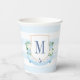 Enhance your drink service with our coastal-themed paper cups, featuring a hand-painted watercolor blue and white monogram crest of blue and tan. Ideal for nautical-themed weddings, baby showers, and events, these stylish and personalised cups add a sophisticated touch to your celebration. This paper cup design features a hand painted coastal crest with hydrangeas, foliage, an anchor and oyster shells. The crest shape is a ships rope border.