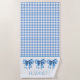 This cute personalised beach towel features a preppy blue and white gingham background with matching blue bows. Personalise with your choice of name or special text.