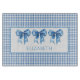This cute personalised glass cutting board features a preppy blue and white gingham background with matching blue bows. Personalise with your choice of name or special text. Makes a great gift for first apartments and new homes.