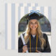 Celebrate this special milestone with a clean and timeless graduation design that feels both modern and effortlessly classic. Featuring soft blue vertical stripes, a delicate bow detail, and a polished photo layout, this design blends preppy charm with a personal touch through customizable photos and text.