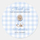 Preppy Blue Gingham & Teddy Bear Baby Shower Classic Round Sticker