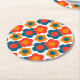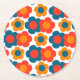Preppy Blue Orange Hippie Flower Pattern Round Paper Coaster
