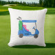Buy this preppy blue golf cart pillow and personalise with a name for a gift. This blue golf cart can be found in other items in my shop, PageCreativeDesigns.